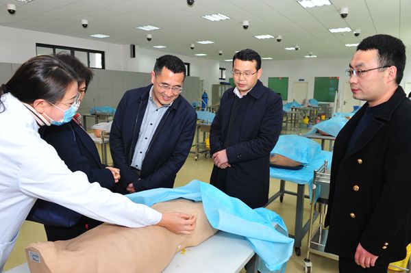 座谈会前,考察组一行参观了学校科研实验中心、国家级临床技能实验教学中心、教育部医学人文素质教育基地。学校学生工作部(处)、发展规划处、教务处、科技处、对外交流合作处、临床医学院、第一附属医院等部门负责人出席座谈会。