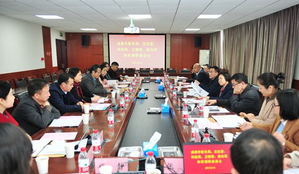 3月10日,成都市委教育工委专职副书记何荣、成都市发展和改革委员会总经济师李莉率领成都市教育局、发改委、科技局、卫健委、规自局等相关部门领导一行八人到我校调研考察。学校党委书记余小平、校长樊均明、副校长王计生及成都市新都区教育局副局长曹晓峰陪同调研并召开座谈会。座谈会由王计生主持。
