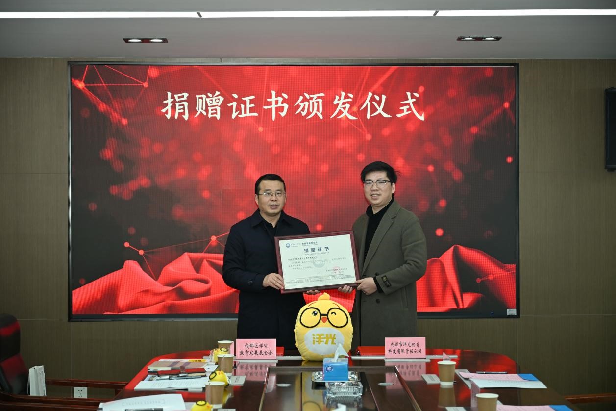 成都市洋光教育科技有限责任公司向我校捐赠25万元奖励培训基金